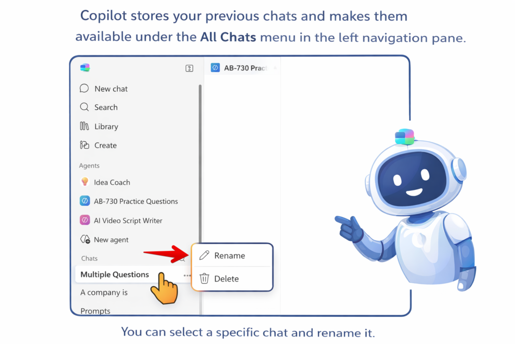 Renaming conversations helps you stay organized, especially when you’re working across multiple projects or using Copilot for different tasks. Microsoft provides a simple way to rename chats through the Copilot interface.